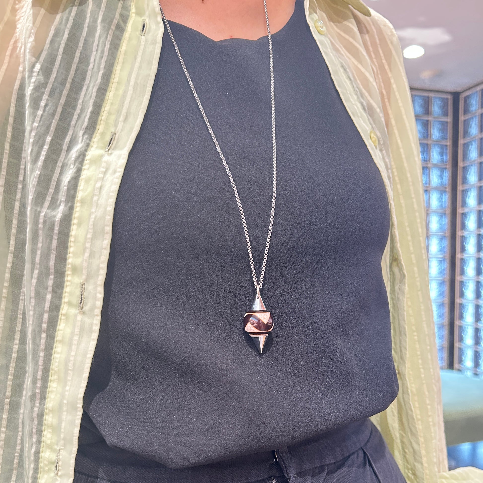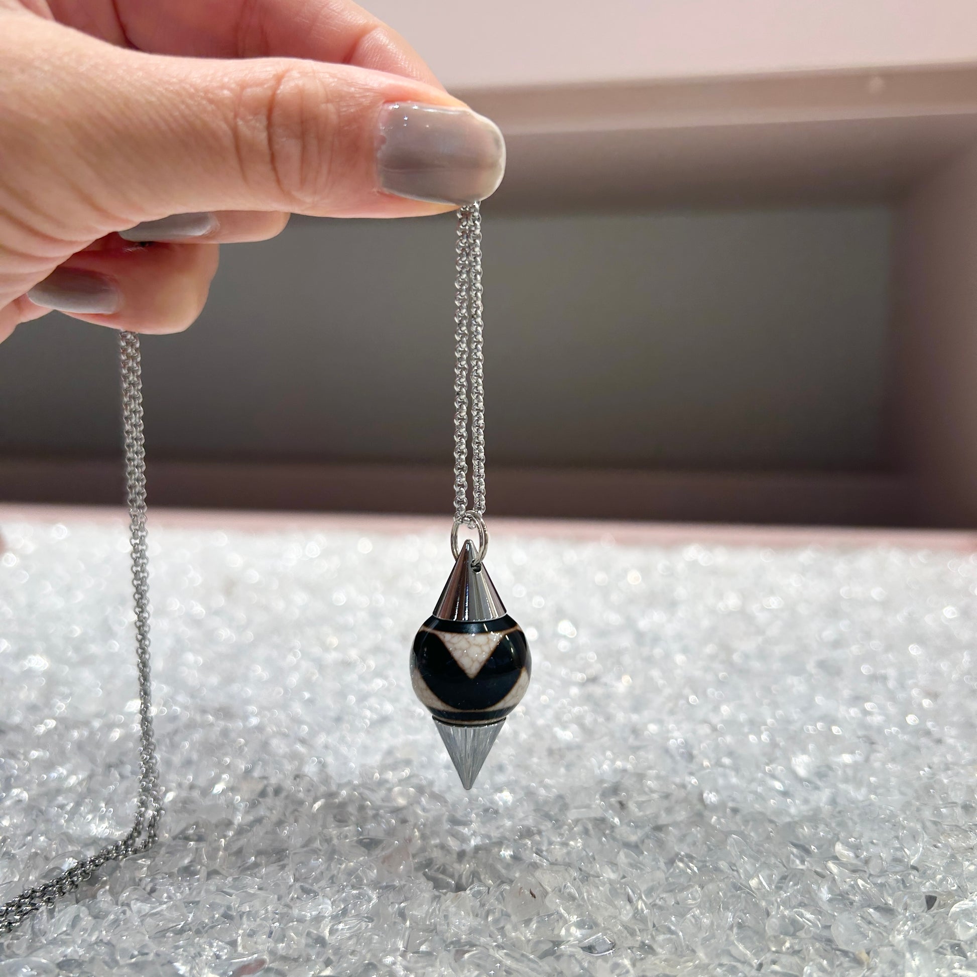 ダウジングに使う「振り子」のことで、自分の中の潜在意識の声を聞くためのアイテムです。