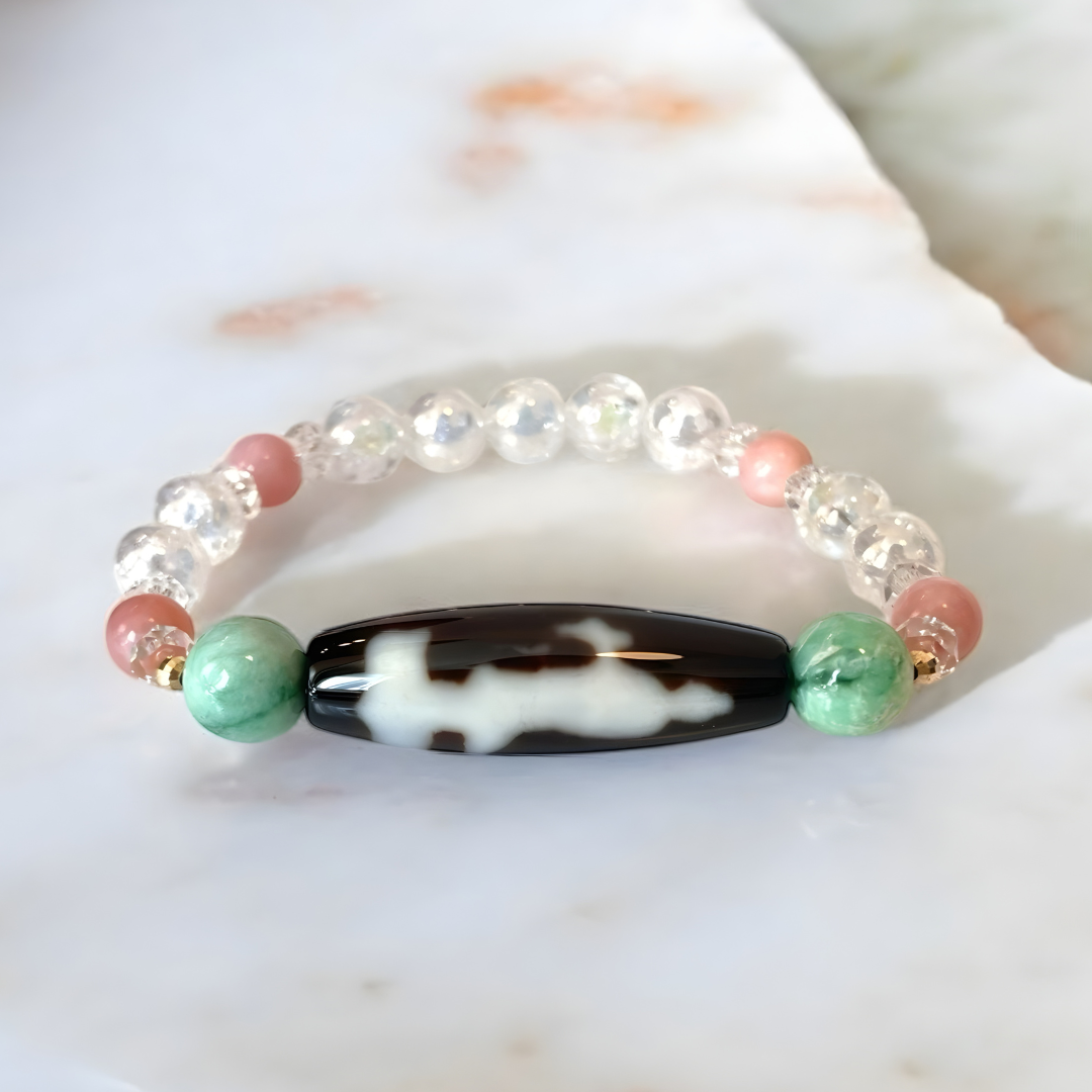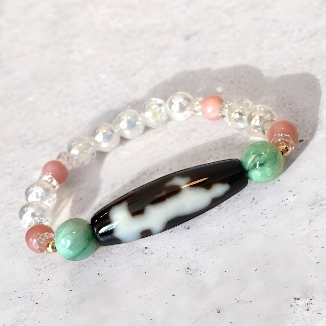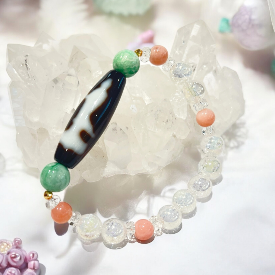 翡翠(ヒスイ)、ピンクオパールを組み合わせた、優しい