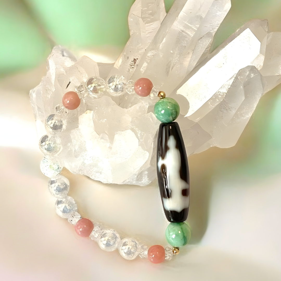《大特価》K18入り!双観音天珠&ヒスイ&ピンクオパールブレスレットオッか