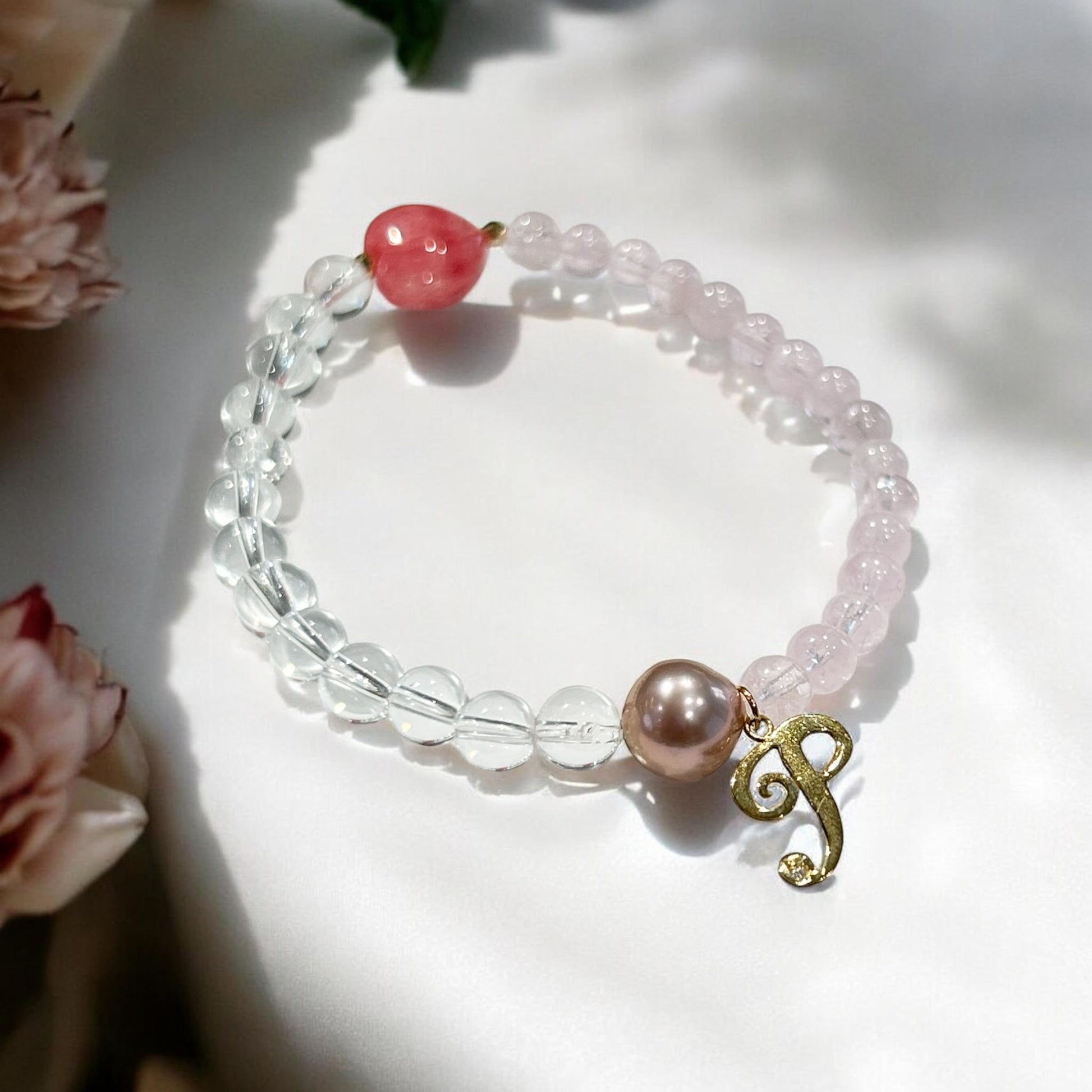 やわらかな守りと前向きなエネルギーを感じていただけるようなブレスレットです。