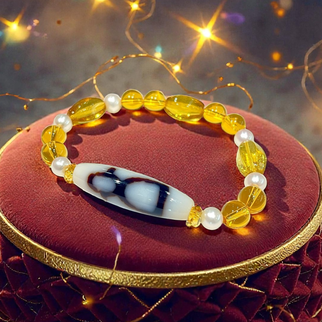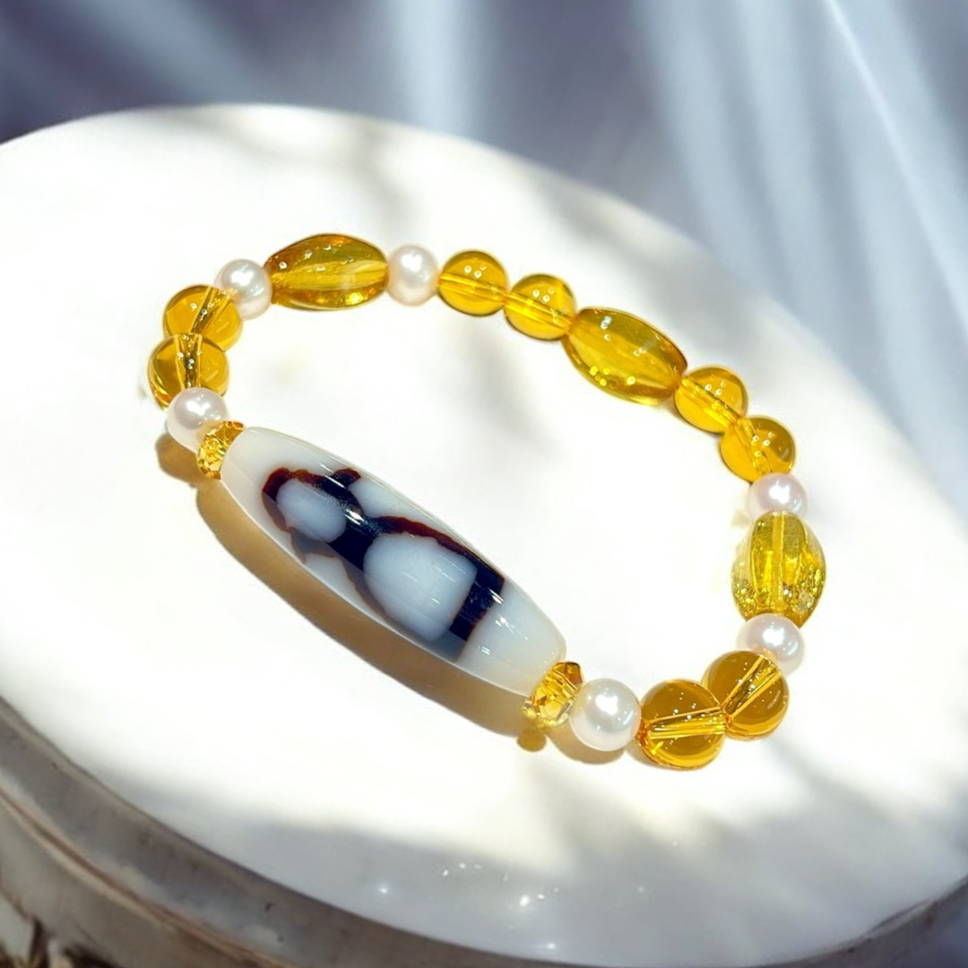 《一点物》金運ブレス 財神白天珠&パール&イエローアンバー