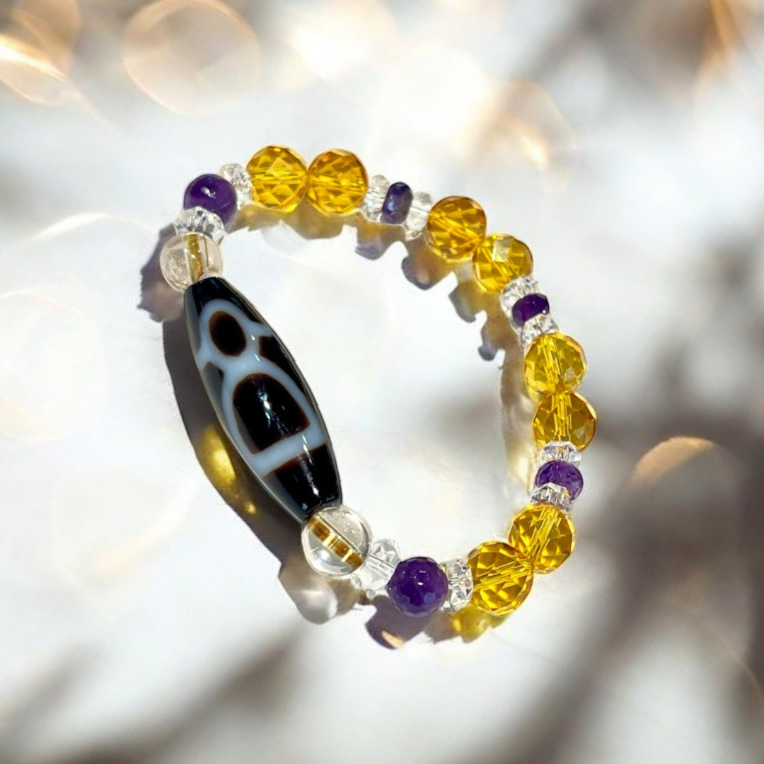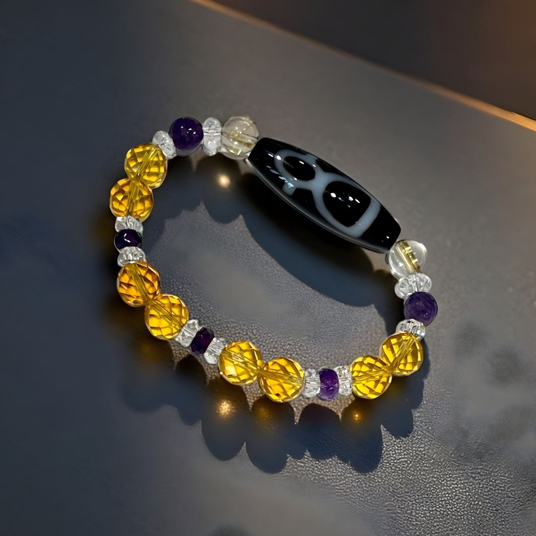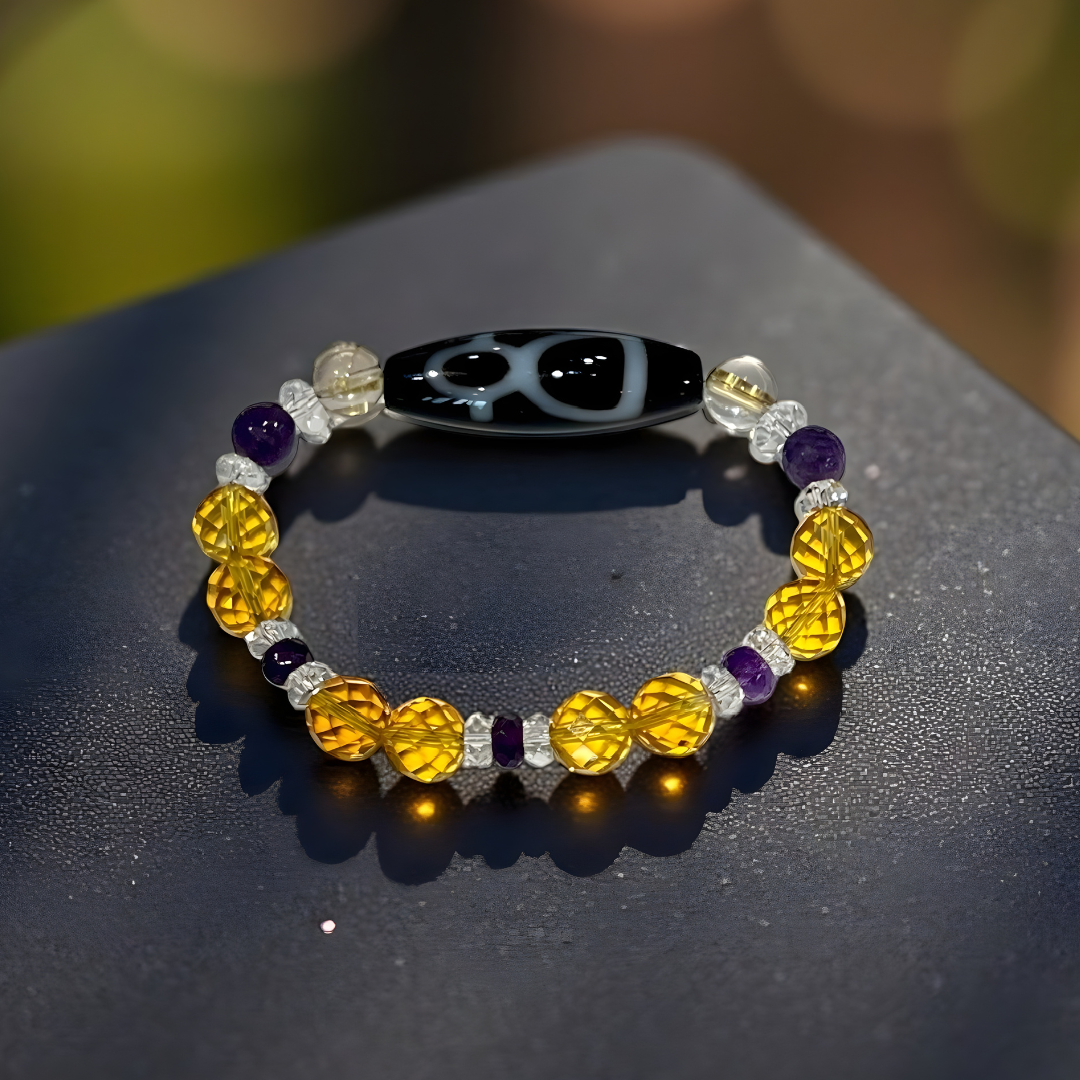 《一点物》金運ブレス 財神天珠&シトリン&アメジストブレスレット