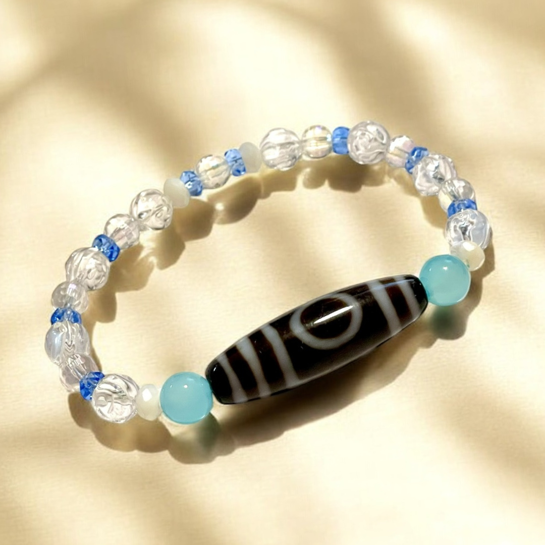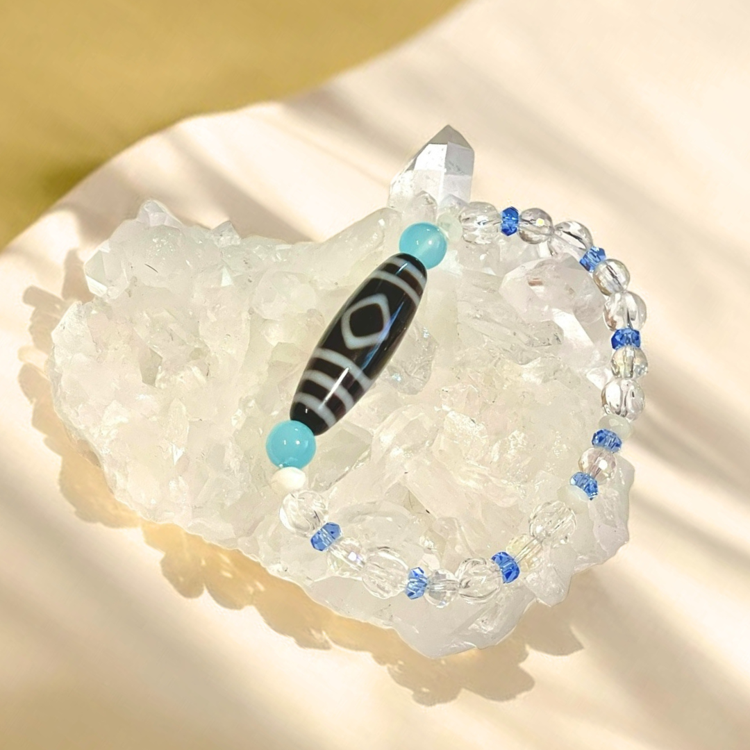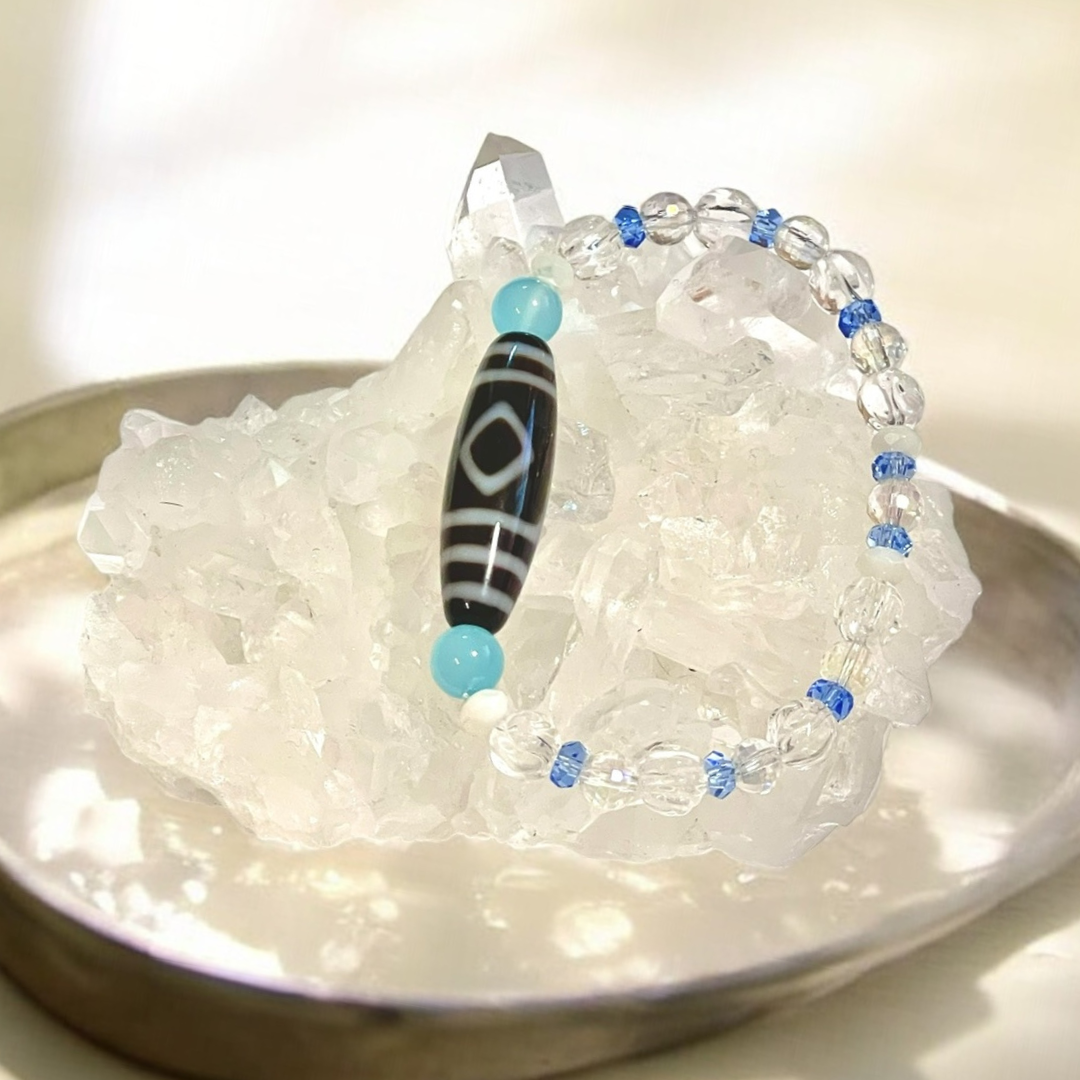 《一点物》増益天地天珠&水晶&シーブルーカルセドニーブレスレット