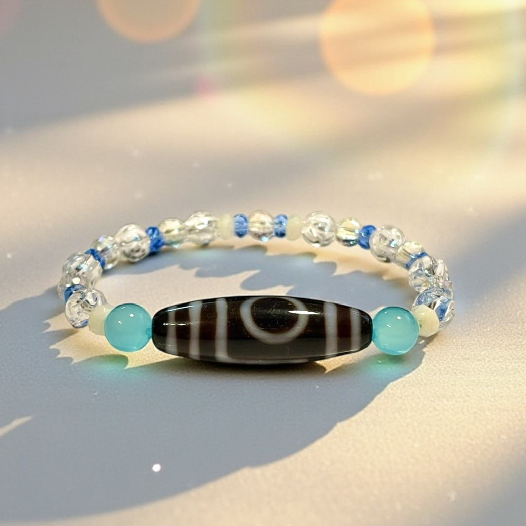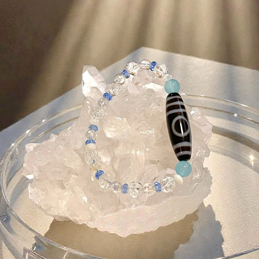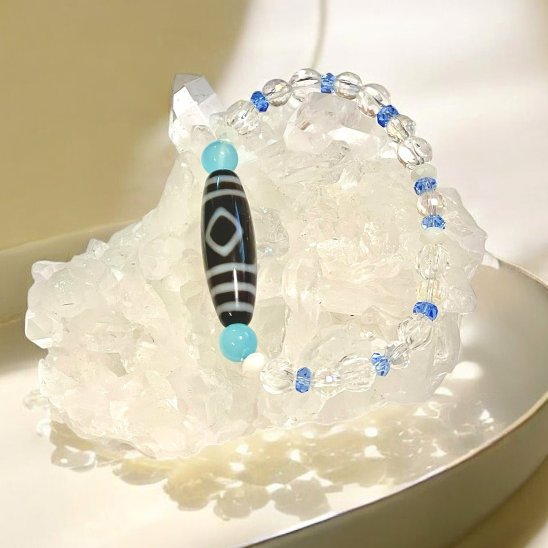 《一点物》増益天地天珠&水晶&シーブルーカルセドニーブレスレット